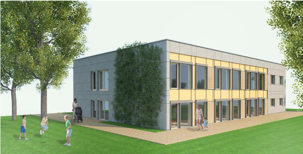 Ein Neubau mit einer hochmodernen Kindertagesstätte zeichnet sich durch fortschrittliche Bauweisen und Materialien aus.