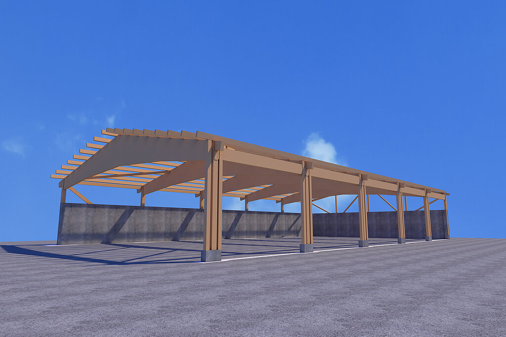 Den Neubau einer modernen Halle mit einer Dachkonstruktion aus Holzleimbindern. Dieses Projekt kombiniert Eleganz mit technischer Raffinesse und bietet vielfältige Nutzungsmöglichkeiten.