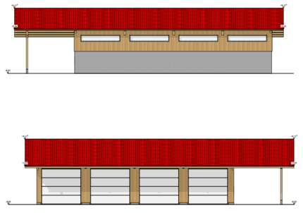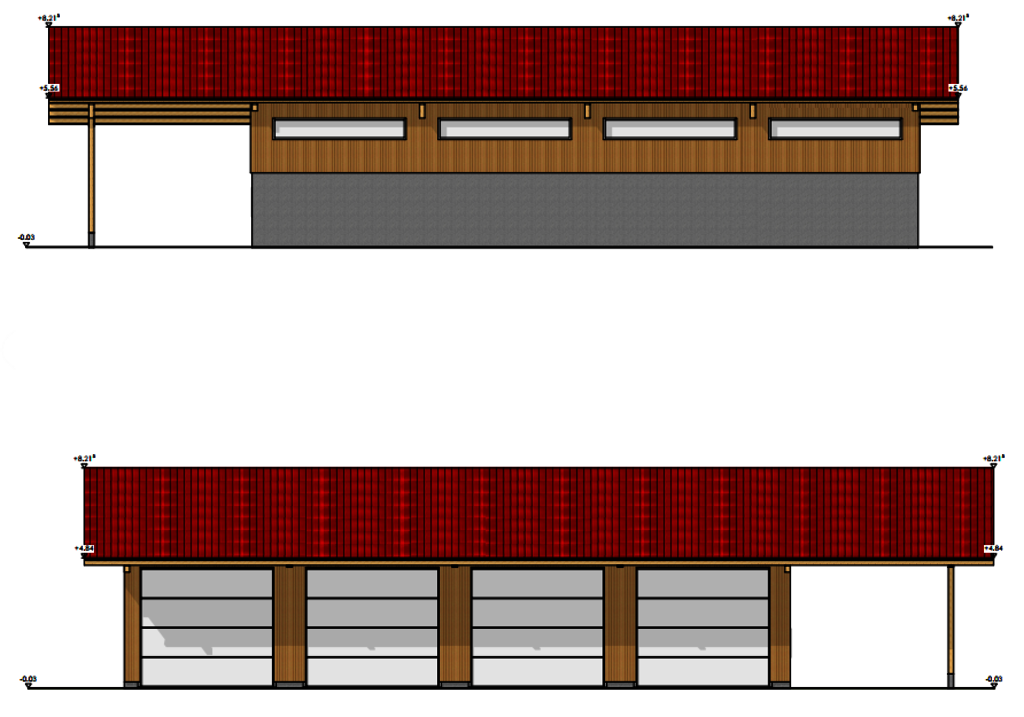 - Aussteifungskonzept: Ein besonderes Aussteifungskonzept für die Traufe mit Toröffnungen wurde entwickelt, um die strukturelle Integrität und Stabilität der Konstruktion zu gewährleisten. Dies ist besonders wichtig bei großen Öffnungen, die zusätzliche Belastungen und Kräfte auf die Struktur ausüben.