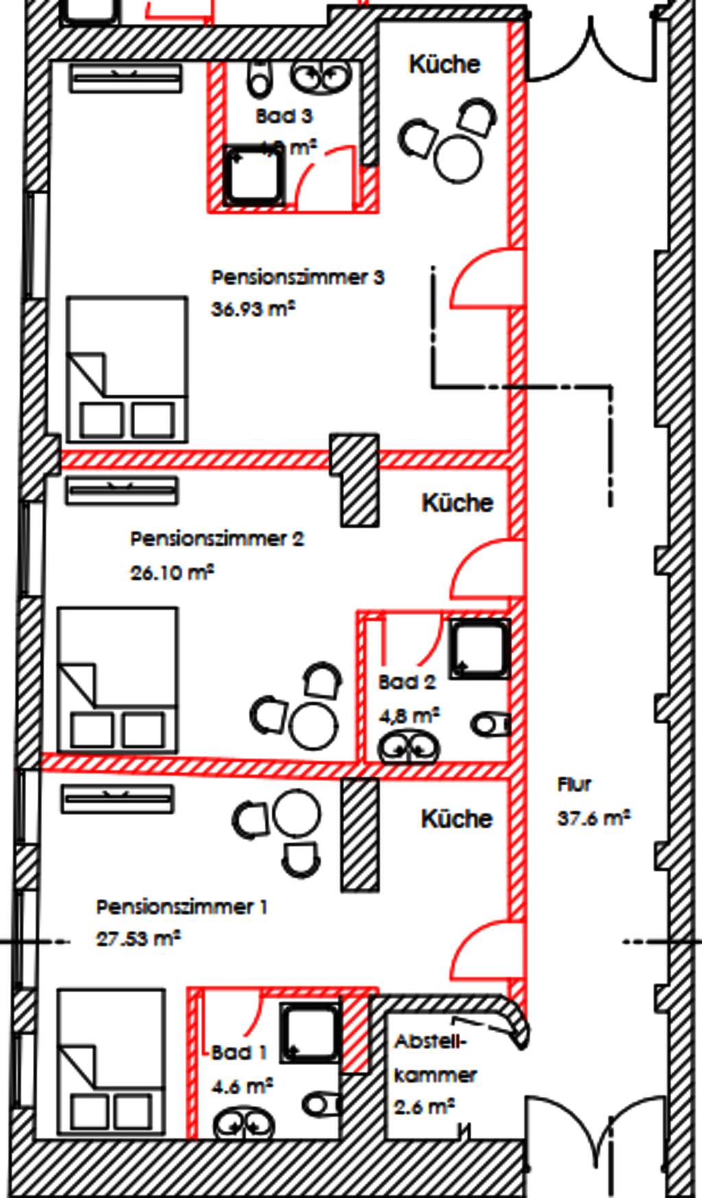 - Historische Bewahrung: Die sorgfältige Revitalisierung zielt darauf ab, die originalen Bauelemente und Materialien zu bewahren, um den historischen Charakter des Gebäudes zu erhalten. Dies schließt die Restaurierung von Fassaden, Fenstern und anderen architektonischen Details ein.