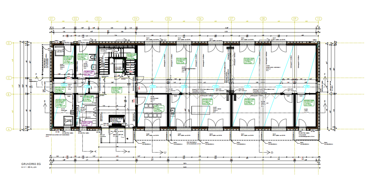 - Detaillierte Fertigungsunterlagen: Im Rahmen der Modulvorfertigung wurden von der Beck&Frank Planungsgesellschaft GmbH umfangreiche Werkstattzeichnungen, Holzbaumodulzeichnungen und Abbundpläne erstellt.