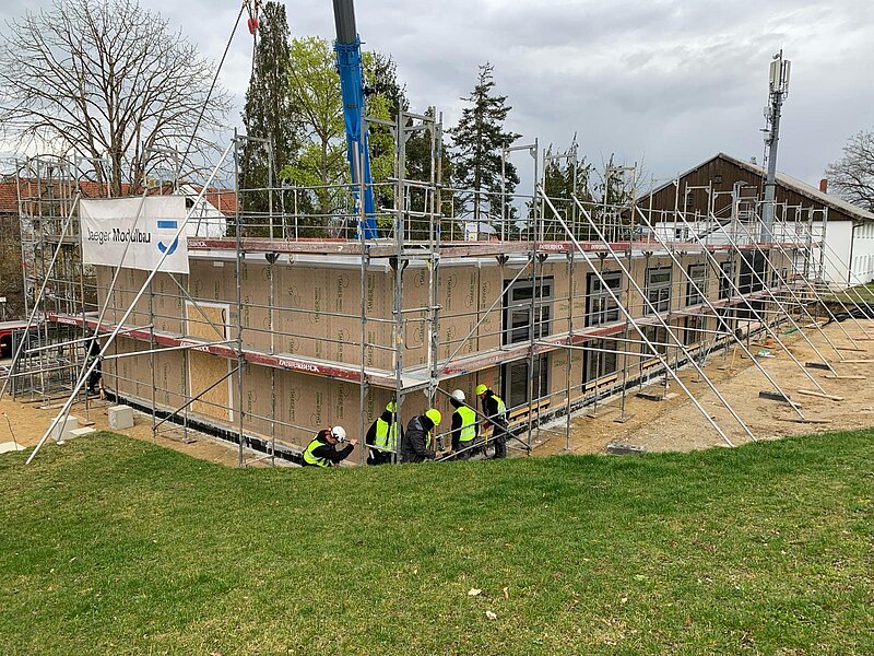 - Holz-Modulbauweise: Das gesamte Gebäude wurde in Holz-Modulbauweise geplant, mit Ausnahme der Stahlbetonfundamente, die für die notwendige Stabilität sorgen.
