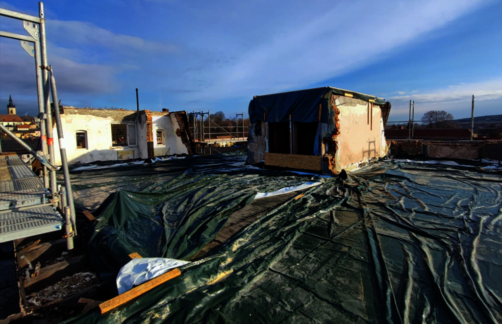 - Schadensbewältigung: Teile der Dach- und Deckenkonstruktion waren stark beschädigt, was eine sorgfältige Analyse und Sanierung erforderten, um die strukturelle Integrität wiederherzustellen und langfristig zu sichern.